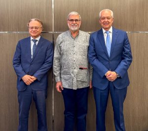 Foto 1.- Alberto Dahik (director del Centro de Estudios Económicos y Sociales para el Desarrollo (CESDE) y director general de la Facultad de Posgrados de la UEES), Walter Spurrier (director y analista de Análisis Semanal), e Iván Andrade (presidente Banco del Pacífico).